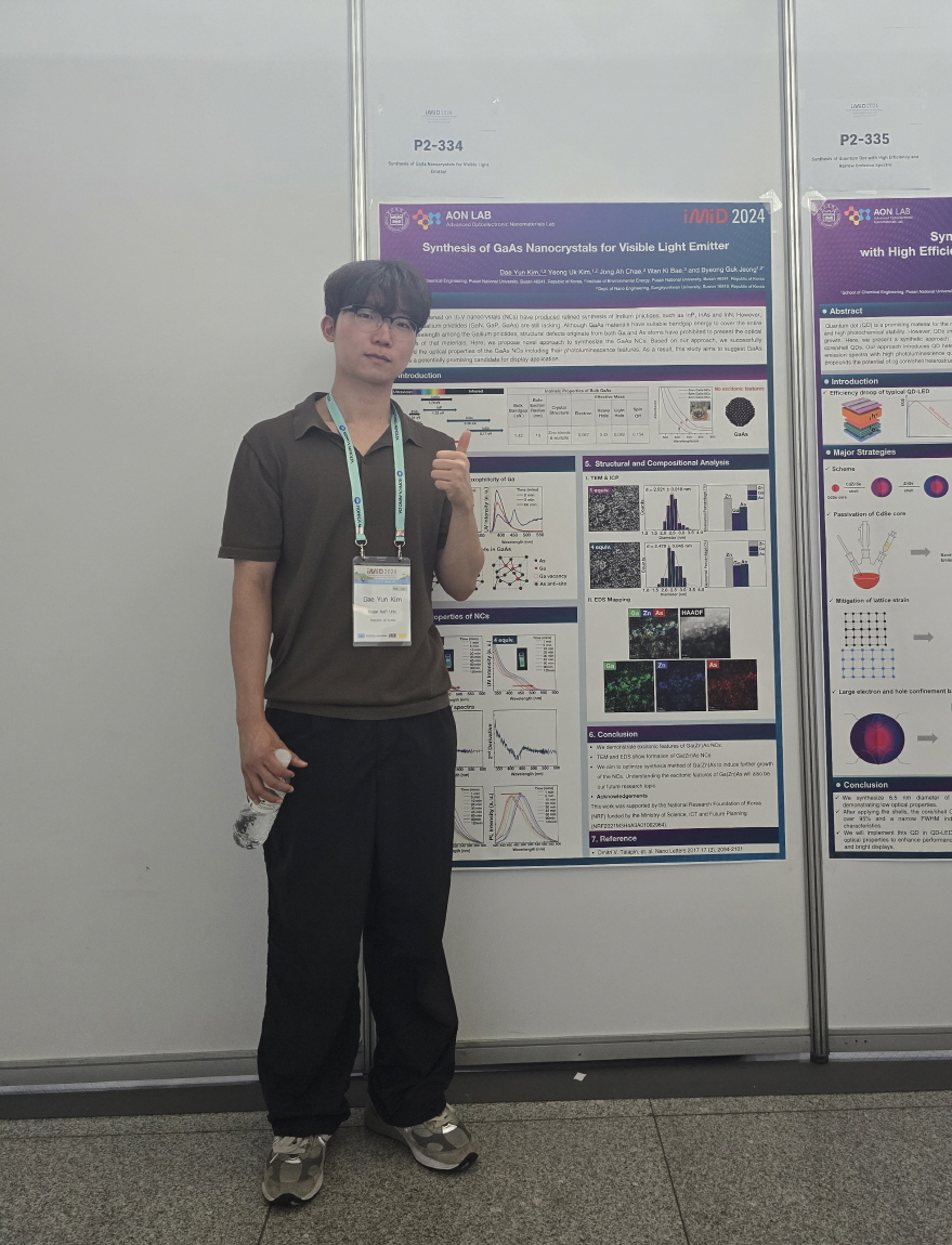 김대윤 학생은 “Synthesis of GaAs Nanocrystals for Visible Light Emitter”을 주제로 포스터 발표 평가에서 호평을 받아 수상의 영예를 안았다.